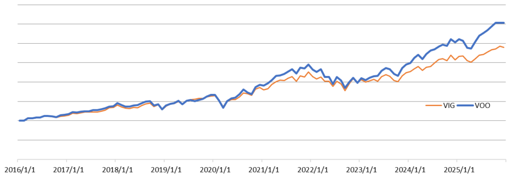 【最新データ】VIG vs S&P500(VOO)のリスク・リターン比較