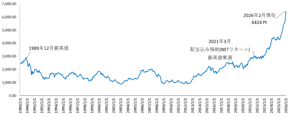 (※1989年12月〜2026年2月までの月足終値をもとにした独自試算です)
